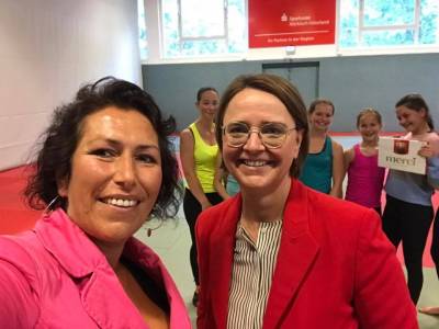 Die Bundesvorsitzende der Frauen Union, Staatsministerin Annette Widmann-Mauz MdB, war heute in Märkisch-Oderland unterwegs, um sich mit mir zum Thema Mädchen und Frauen im Sport zu informieren. Zum Einstieg gab es eine sportliche Vorführung des TeamGym des KSC Strausberg. Anschließend ging es nach Müncheberg zu einer Gesprächsrunde im SG Traditionszimmer. Es waren interessante Themen heute dabei: ob Integration gerade bei Frauen und Mädchen oder Belastungsgrenzen im Ehrenamt. Übungsleiterinnen spenden so zum Beispiel fast immer ihre Aufwandsentschädigung an den Verein. Aber auch Fragen, welche Position Frauen im Vorstand oft übernehmen, wurde besprochen. Vielen Dank an die vielen Informationen von den Teilnehmerinnen! Es war ein wirklich guter Austausch, der klar gezeigt, dass in dem Bereich noch einiges zu tun bleibt.